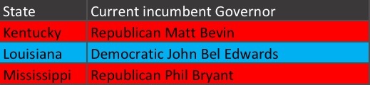 October 26, 2019October 26, 2019 2019 Gubernatorial Elections 2019 Gubernatorial Elections Seats up for election in 2019 What seat are you watching? Describe in one (1) word: Share this: Click to share on X (Opens in new window) X Click to share on Facebook (Opens in new window) Facebook Like Loading... Related